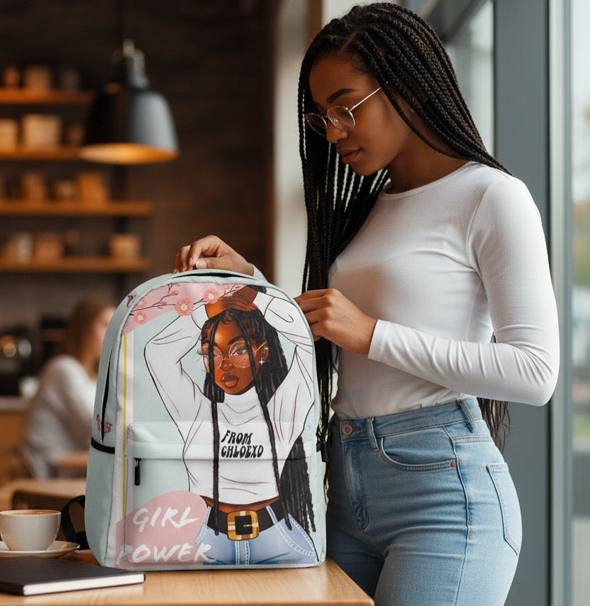 Adjustable straps with a breathable mesh pocket on both sides of the backpack. Double zipper for durability. Inside space for laptop. Comes with matching pencil/pen case as shown in pic. Print shown in picture is on the front of the bag.